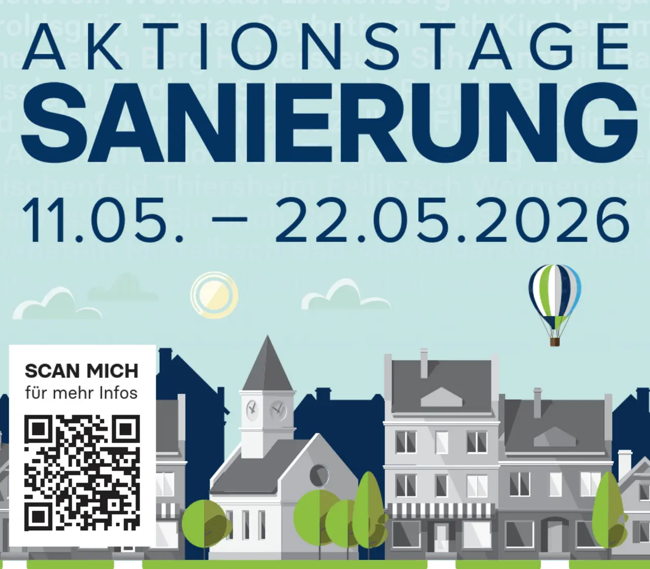 Vom 11. bis 22. Mai 2026 laden die „Aktionstage Sanierung“ zu spannenden Vorträgen, Führungen und Objektbesichtigungen ein. Die erfolgreiche Veranstaltungsreihe der Kooperation Leerstandsmanagement von Stadt und Landkreis Hof, Landkreis Wunsiedel i.F. sowie Stadt und Landkreis Bayreuth findet bereits zum vierten Mal statt.